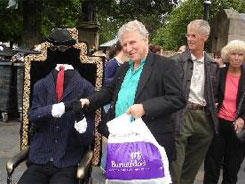 This takes place on an amphibian vehicle, which was used during the D day invasion of Normandy. On board were about a dozen of retard adults, who had the time of their life, so did we as their enthusiasm and noise level was very contagious. They were armed with plastic Viking helmets with horns and just about at every second street corner did the tour leader give them a sign to scare the crowds off by screaming and hollering at full volume. Here and there a helmet dropped on the pavement, but was quickly replaced again.