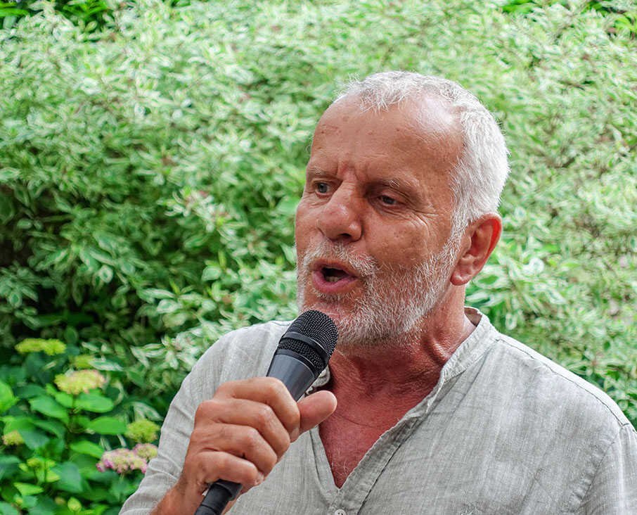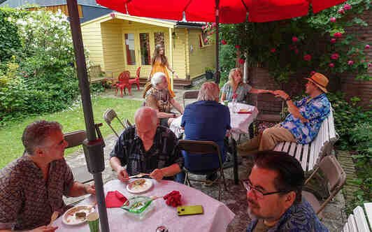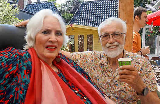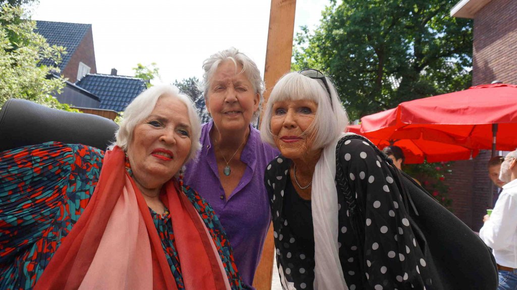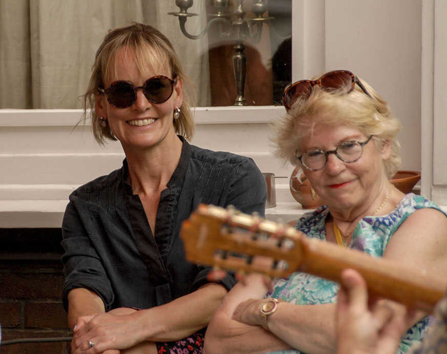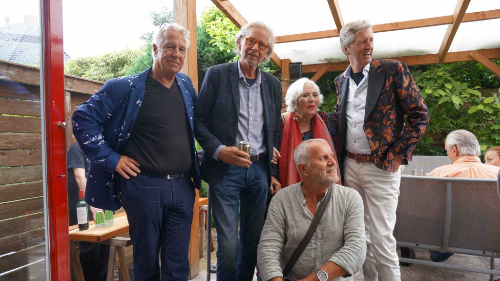 Perfect weather gods assisted us by keeping the temperatur moderate late twenties, no unexpected rain, our friends Theo (the barkeeper), Kester and Hannah, both live--in- mates in my house, Alkis, our Greek young manager and know- all about the internet, Herman de Bock, who arranged for the proper sound system to let everyone enjoy the guitar music from Frank de Kleer, or the sound of the piano and voice by Frank Affolter or for that matter anyone else, who wanted to use the mike like TOM DE JONG did towards the end with his own chansons and most of all my own favourite song by Ramses Shaffy: LAAT ME...