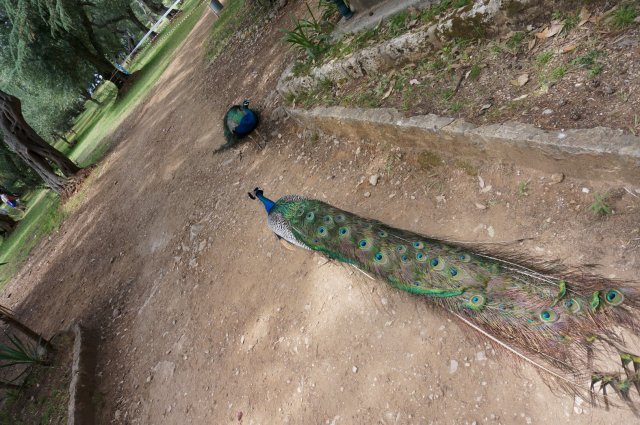 peacocks close up