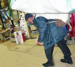 You often see men carrying heavy loads of merchandise on their backs which at quite an early age seems to disfigure their bodies to such an extent that they become hunchbacks for the rest of their lives.